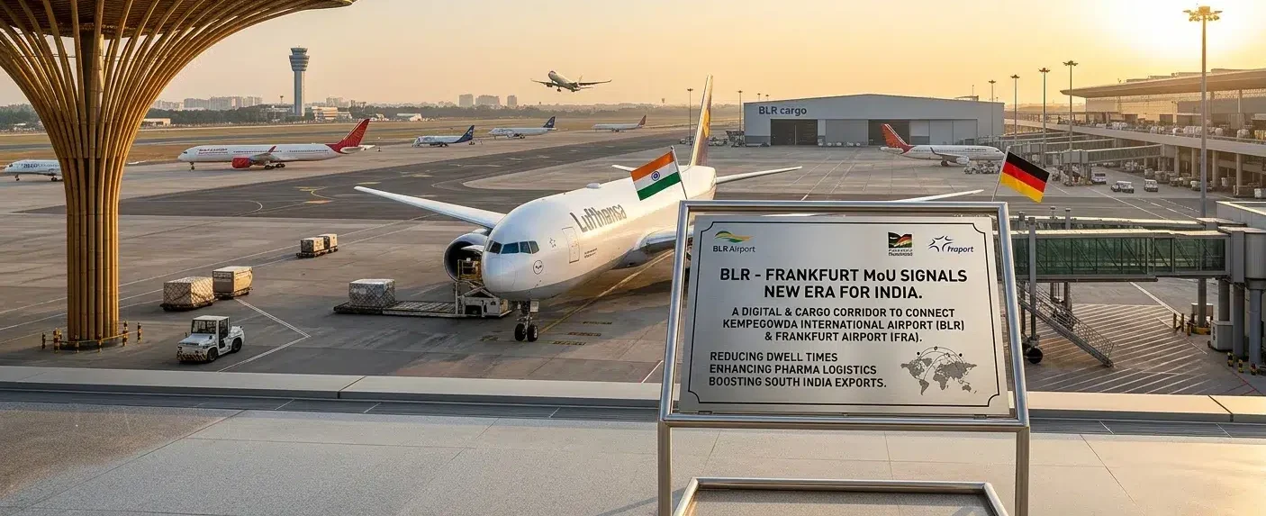- BLR- Frankfurt MoU Signals New Era for India – Europe Air Freight Connectivity: BLR- Frankfurt MoU Signals New Era for India – Europe Air Freight Connectivity aiming to establish high speed and data- led trade lanes. The emphasis in entirely on logistics, electronics, medicines and perishables. This setting is a new benchmark for time-sensitive air cargo between South India and Europe.
